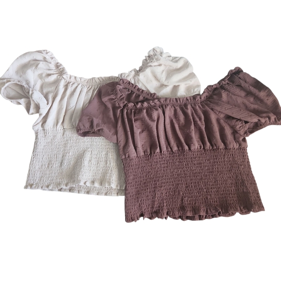 Elevate your wardrobe with this chic off-shoulder blouse set. Featuring a stylish cream and brown design, these blouses offer both comfort and elegance for any occasion.