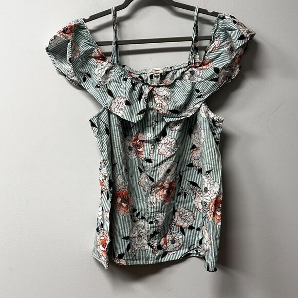 No Comment Plus Cold Shoulder Floral and Stripes 100% Cotton Size 2X