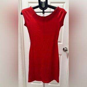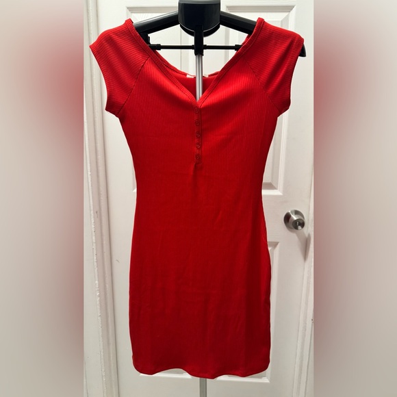 No Comment Red Ribbed Button-Front Dress