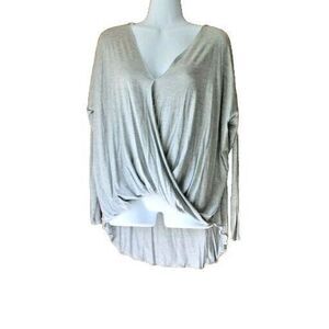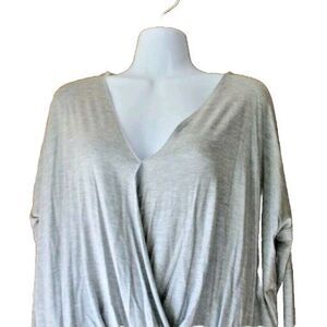 No Comment Top Blouse Grey Women's Crossover 3/4 Quarter Sleeves Size Large