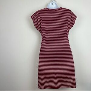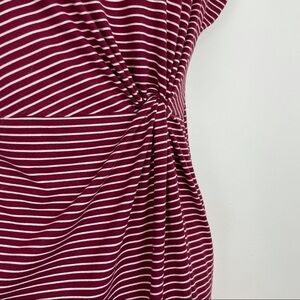 No Comment Ruched Twist Waist Red Pink Striped Dress Size Medium.