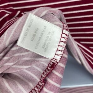 No Comment Woman’s Ruched Twist Waist Red Pink Striped Dress Size Medium