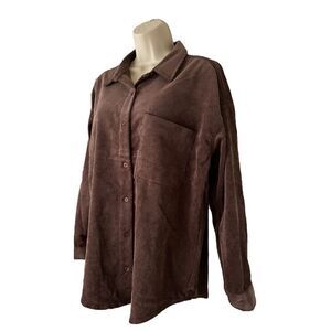 No Comment Ribbed Button Up Long Sleeves Top Brown Juniors medium