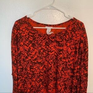 Great condition. No Concept But Buy The Good Sense made by ink. Topper. Made to go over clothing items to make them more modest. High low hem. 3/4 sleeve. Red with black geometric pattern. One size. No material tag. Pit to pit laying flat 27” Shoulder to hem 20.5”/29” Sleeve (pit to hem) 9”. All measurements are approximate and taken lying flat. Smoke free home. No trades, offers welcome.