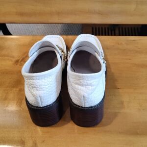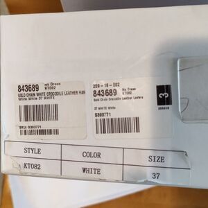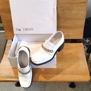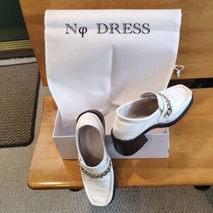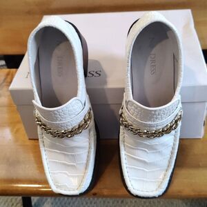 gently used No Dress size 37(6) white with gold chain crocodile leather handmade shoes with box and bag.minor marks on sole but otherwise flawless