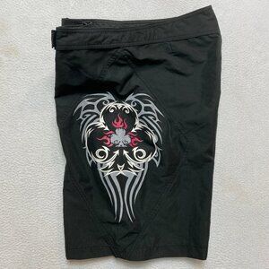 No Fear Board Shorts Mens Size 34 Black Tribal Graphic Swim Trunks