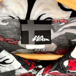 No Fear Dragon & Hibiscus Mens Hawaiian Shirt Size Medium Vintage 90s