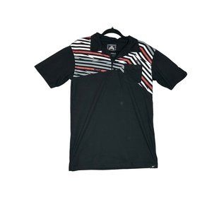 No Fear Mens Large Skating Collared Polo Black White and Red Stripes Y2K