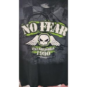 No Fear Tshirt - Large Men's - Y2K 90s Style Vintage No Fear Skull Tee- Green