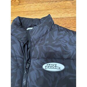 No Fear x H&M Full Zip Puffer Vest Sz XXS Black All Over Print 90s Graphic Logo