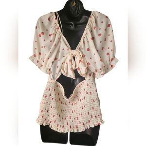 strawberry summer top. Size:1X. Back tie and bottom is stretchy.No holes or stain.