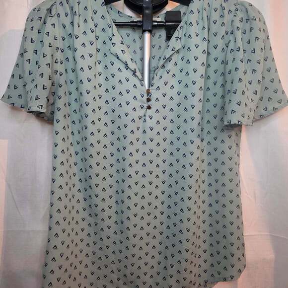 No Frills Mint Green Goemetric Pattern Short Sleeve Blouse Small