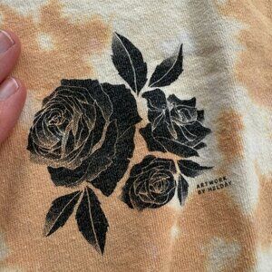 Powerful “No Justice No Peace” graphic tee featuring rose art by Helday. Men’s medium, preloved condition with wear.