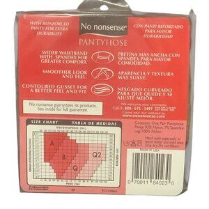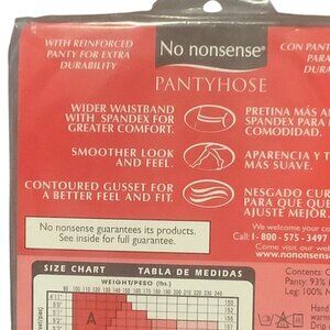These No Nonsense pantyhose offer reinforced durability and comfort, featuring a wider waistband with spandex for a smoother fit. Designed with a contoured gusset for enhanced comfort, they provide a professional appearance and long-lasting wear.