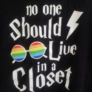 No One Should Live in a Closet T-Shirt Black w/Rainbow LGBTQ+ Size M