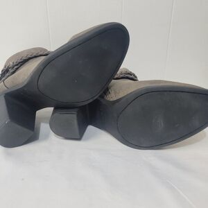 No Parking Enid Women's Size 10 Gray Side Zipper Booties, Braided Strap with Buckle 3" Heel
