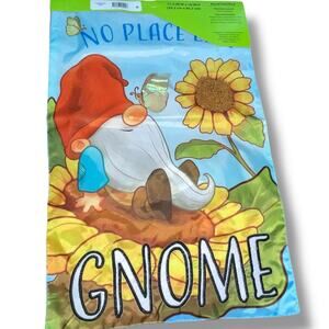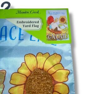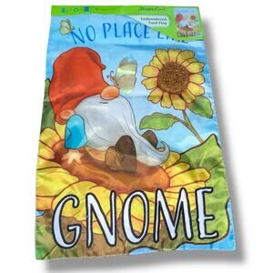 No Place Like Gnome Meadow Creek 3D Garden Flag 18" Sunflower Housewarming Gift