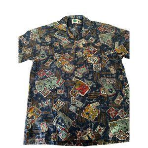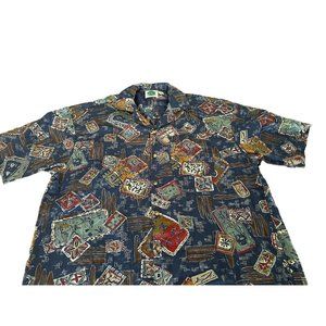 No Problem International Men Hawaiian Shirt Size L Button Up Short Sleeve