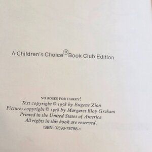 Vintage Hardcover No Roses for Harry! Written by Gene Zion. Copyright 1958. Cover has some wear and marks. Inside is in excellent condition. Feel free to ask questions.