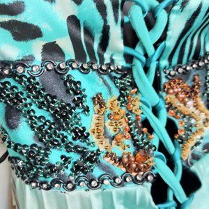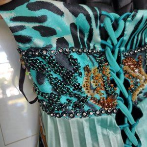 No Tag on this Beautiful Bejeweled Paisley design Halter Pleated, Maxi-dress/gown.