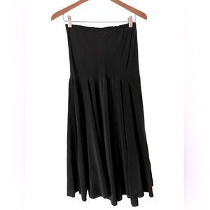 This piece could be a skirt or it could be a dress. There is no tag but it really feels and drapes like silk. Elastic top. Really pretty, classy, and simple. Lovely drape and swing. Could also be worn under another dress or skirt to be a luxurious feeling underlay or peek out layer.