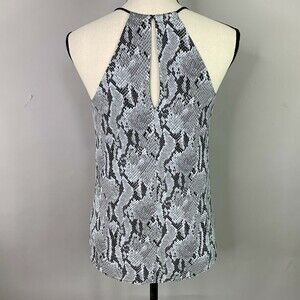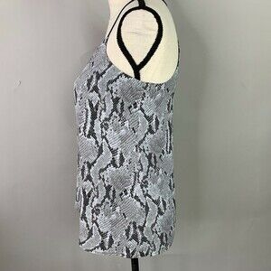 No Tag/Unbranded Flowy Snakeskin Pattern Tank Top Women S Casual Reversible STYLE: Cami, tank top, reversible, string spaghetti straps, keyhole back COLOR: Gray and black SIZE: No tags but measures like a Small CONDITION: Very good pre-owned condition. Measurements are approximate. Chest: 32" Length: 24" shoulder to hem Side length: 16"