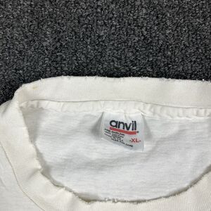 The No Time Out Workout T Shirt is a vintage retro shirt from the 1990s, featuring a classic crew neck and short sleeves. Made of comfortable cotton knit fabric in white, this men's size XL shirt is machine washable and perfect for the summer, fall, and spring seasons. With a regular fit and the brand Anvil, this in motion design with a stitch character adds a unique touch to your wardrobe. Perfect for casual wear and adding a nostalgic touch to your outfit.