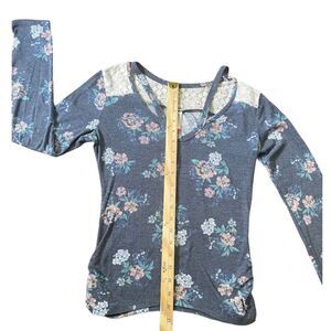 This No Boundaries long sleeve shirt in size M features a beautiful floral pattern in blue. The shirt has a V-neckline and is made of a comfortable and durable blend of rayon and polyester materials. It is a great addition to any wardrobe, perfect for woman who want a stylish and comfortable top. The shirt is designed with a graphic print that adds a colorful theme to the overall look. It is an ideal choice for women who want to make a fashion statement while staying comfortable.