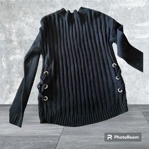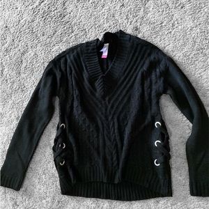 No boundaries, V- neck side lace up ribbed cable knit black sweater, jun…