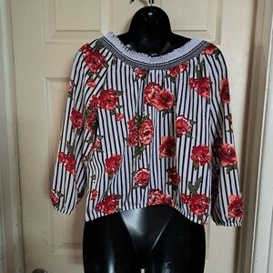 No boundaries floral striped off the shoulder blouse size medium pit to pit size is 21" if you have any questions please message me bundle for bigger deals