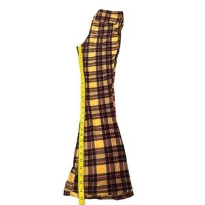 Tags: punk, y2k, plaid pants, flare leggings, loose leggings, stretch, colorful, yellow, clueless, plaid, pattern,school, college