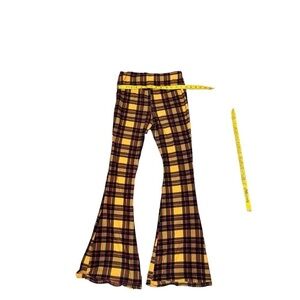 No boundaries stretch flare plaid leggings yellow black y2k short inseam