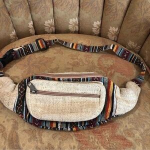 No brand Tribal print and burlap Fanny pack. Adjustable strap. 3 compartments.