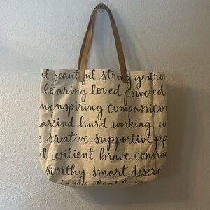 No brand inspirational words tote bag with inside pocket