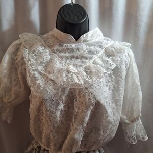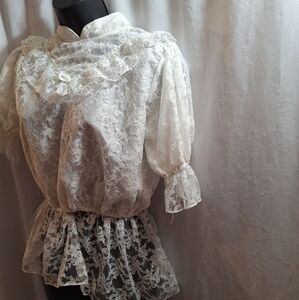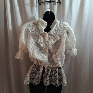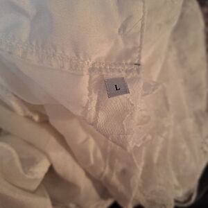 No brand lacey back button-down blouse large pit to pit size is 21" top of shoulder to bottom hem is 25" if you have any questions please message me bundle for bigger deals Bin-110