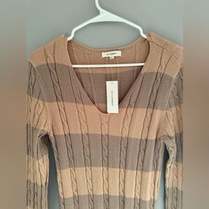 No comment Womens Sweater Dress S Brown Striped Long Sleeve Maxi V Neck New Fall