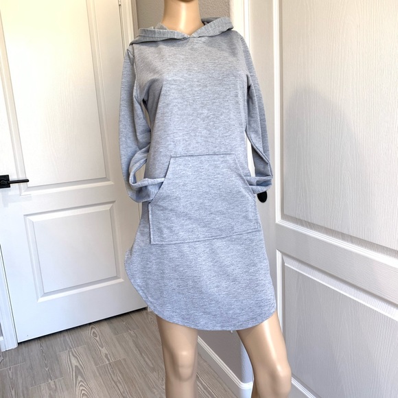 Grey, trickle dresses, hood, long sleeve, pocket, not new, excellent condition
