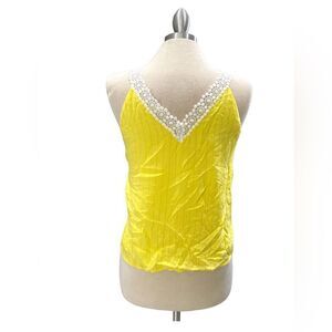 No label bright yellow white flower lace trim shiny gold threads lined brandnew