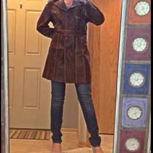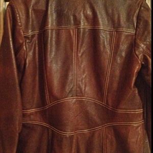 100% leather. Beautiful color variation and stitching. Comes with 2 extra large buttons and 2 small. Worn only a handful of times.