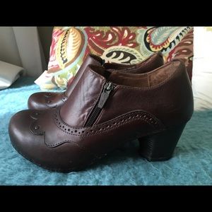 Gorgeous for fall! Reposh item, size 37 but fits like a size 6.5. Brown leather upper, zip up bootie with heel.