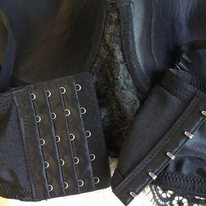 No1 Los Angeles size Large stretchy embellished bra top. 4 sets of clasps for perfect fit. Foam cups and vertical ribs. Removable and adjustable straps or cross cross in the back. Raw edge lace on top and bottom of bra.