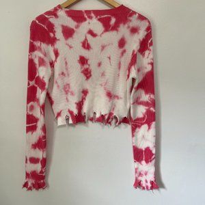 No1 Los Angeles Pink Tie Dye Distressed Crop Top Size L