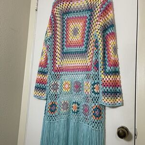 No 1 Los angeles acrylic crochet quilted muti color maxi cardigan sweater duster