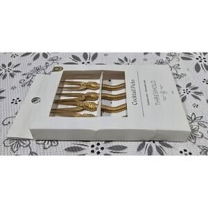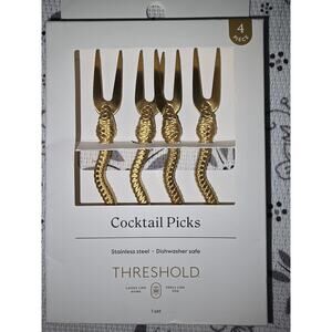 Elevate your bar or buffet with these gold snake cocktail picks. Stainless steel with a detailed serpent handle and two-prong fork tip. Great for Halloween parties, charcuterie, and home bars. New in box.