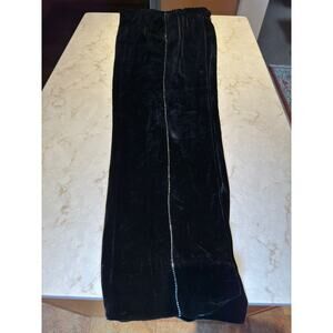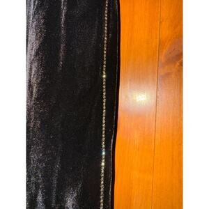 Black velvet track pants accented with twin rows of Swarovski crystals down each leg. Elastic waist and Italian tailoring deliver luxe athleisure. Never worn.