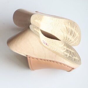 No.6 Store Camel Leather Peep Toe Clogs – elevate your everyday look with these handmade minimalist Swedish-style clogs.