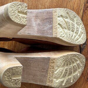 Gorgeous pair of slingback clogs from legendary No.6 Store in NYC. Suede uppers with wooden heel. Barely any signs of wear (worn on carpeted surfaces) Look great with jeans, cord, skirts. Channel your inner Gloria Steinem.