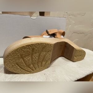 No.6 Two Strap Leather Wood Tan Platform Clog