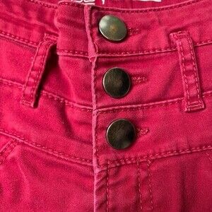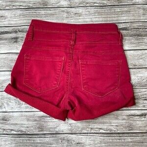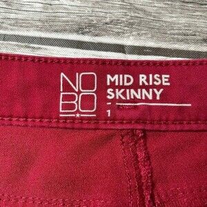 NoBo Mid Rise Skinny Cutoff Cut Off Cuffed Jean Shorts Deep Dark Red 1 Buttons