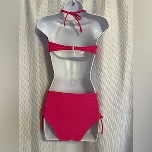 NoBo pink 2-piece cinched bikini swimsuit size XS NWT